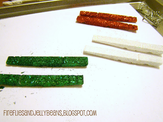 FUENTE: http://www.firefliesandjellybeans.com/2010/12/glitter-clothespin-gift-tags.html