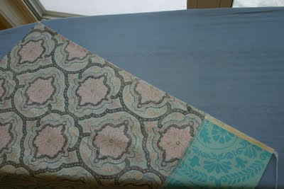Cortar el tejido dobladillo (el azul en la impresión del color azul) a una longitud de 10 "(crea un 5" frontera en la parte inferior) x ancho de la tela