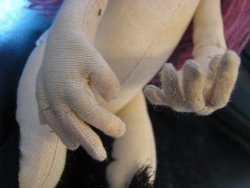 - Rellenar con guata la palma de la mano y lo que falte del brazo y cerrar la abertura.