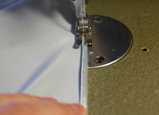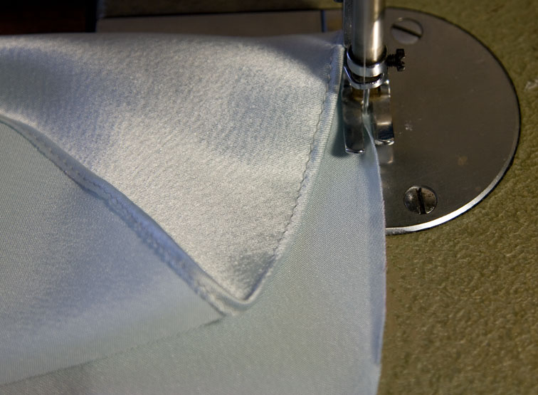 Mi favorito es el acabado de borde un dobladillo pañuelo, así que eso es lo que voy a demostrar aquí. Gire el borde hacia el interior lo más estrictamente posible (alrededor de 2-3mm) y el pliegue COSER: