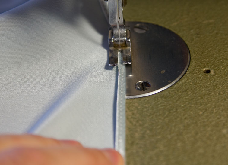 Recomiendo el uso de la plataforma de la máquina de hacer esto, ya que evita el deslizamiento de la tela por todo el lugar.