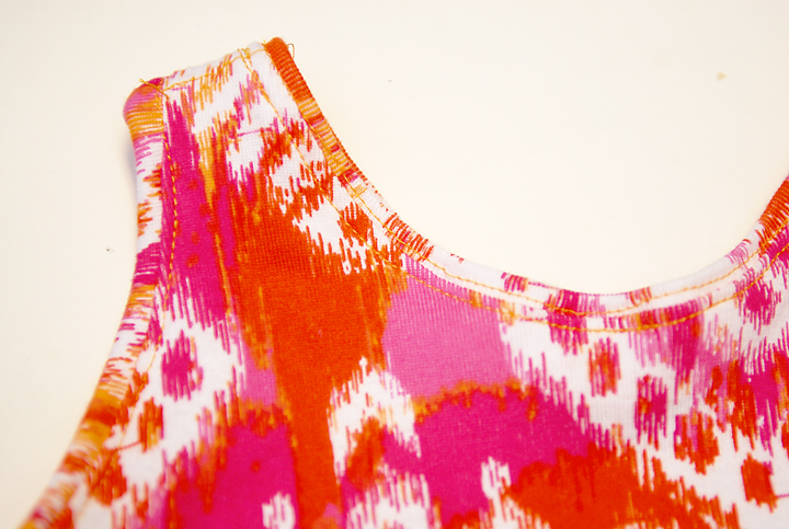 Ahora cuando se cose con tejidos de punto que tiene algunas opciones. Mi ir a la opción es mi remalladora. El ajuste de la alimentación y la puntada en la sarga mantiene el tejido agradable y suave y no se estira, ya que cose. También la puntada se extiende con la tela. Sin embargo, hay otras maneras si no tienen una remalladora. (Otra forma se muestra un poco más tarde) Por ahora coser la parte delantera y trasera lado derecho, junto a la cruz y por el lado. Gire la parte superior derecha hacia fuera.